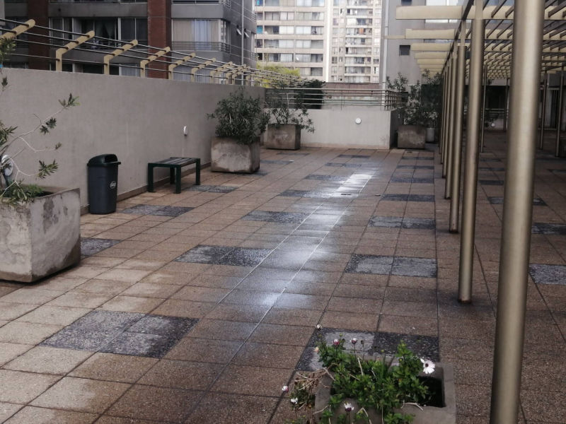 • Posee conserjería 24 horas, piscina con vista panorámica, gimnasio, quincho, sala de lavadoras y secadoras y bicicletero.